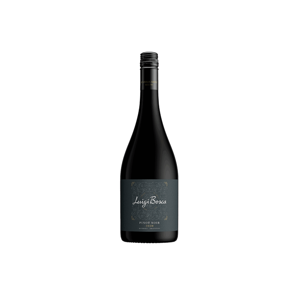 LUIGI BOSCA · Pinot Noir: Refleja la antigüedad del viñedo y la pura expresión varietal. Sus aromas son intensos y equilibrados, destacando frutas negras y delicadas especias. Puede acompañar a muchas comidas! Puede ir con aves de caza, salmón grillado o un tabla de quesos .